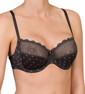 Elastische Spitze kombiniert mit All-over-Druck im grafischen Design in harmonischer Farbgebung. Die feine, matte Simplexware betont die verspielte Optik dieser Serie und garantiert die bewährte Passform bis Cup H. Zwei dezente und modische Farbvarianten stehen zur Auswahl.