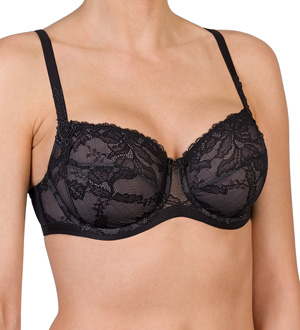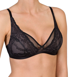Hochwertige Spitzenserie mit floralem All-over-Design in leichter Optik. Die Spitze ist mit feinem Tüll in Kontrastfarbe unterlegt. Feminine Stickerei-Motive an den Trägern betonen die elegante Aussage der Serie. Neu sind der bügellose Triangel-BH und das Hemd in verführerischer Optik.